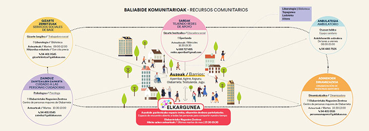 Elkargunea es el nombre del espacio. Se ubicará en el Centro de Personas Mayores de Olabarrieta y estará abierto el último martes de cada mes, de 17:30 a 19:30. Permitirá al vecindario de la Zona 1 contar con un espacio en el que desarrollar proyectos, ideas o acciones de utilidad para la comunidad. Allí se reunirán diferentes generaciones, dando visibilidad a diferentes realidades, lo que permitirá desarrollar iniciativas constructivas para la comunidad.