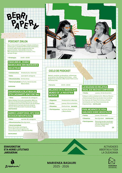 Debatir, analizar, profundizar, reflexionar y socializar los debates feministas es imprescindible, empezando por utilizar medios que hasta ahora no habíamos usado. Han llegado los podcasts a Marienea, este curso la Casa de las Mujeres hará tres.
