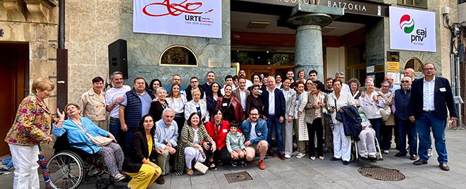 Después, se descubrió una placa conmemorativa acompañada de izada de la ikurriña de la mano de la afiliada más veterana y más joven de la agrupación municipal. Posteriormente, el presidente del Bizkai Buru Batzar, Iñigo Ansola, pronunció un discurso conmemorativo. Y, por último, el acto cerró con el Durangoko Orfeoia.