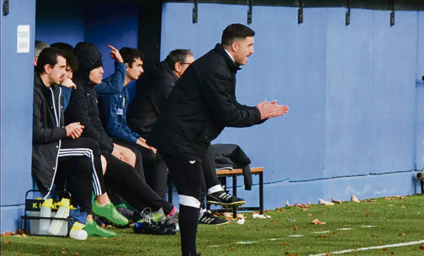 Ander Odriozola, entrenador del CD Galdakao, animando a sus jugadores. (AF)