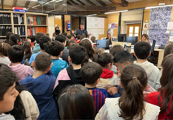 También ha habido un acercamiento al patrimonio y la cultura local; Arriandiaga les ha explicado brevemente la obra ‘La espera’, de Víctor Sarriugarte, que preside la escalinata de subida a las oficinas municipales, así como la del árbol de Gernika que está en su despacho. Asimismo, les ha mostrado el balcón desde donde se recita el pregón y se lanza el txupin en las fiestas patronales Santakurtzak, invitando al alumnado a imaginar cómo la ciudad celebra y se reúne en torno a sus tradiciones.
