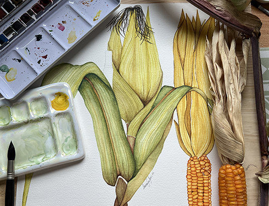 Graduada en Biología y masterizada en Agrobiología por la Universidad del País Vasco trabaja como técnico de conservación de colecciones de Herbario en el Real Jardín Botánico – CSIC, trabajo que combina con su actividad de ilustradora científica botánica. Esta exposición es el resultado de una visión compartida sobre la sostenibilidad y la cultura científica. La propuesta invita a reflexionar sobre la necesidad de cuidar las raíces que nos vinculan con el suelo, desde una perspectiva tanto estética como agronómica.