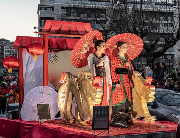 • 18:30. Saludo Inautxo desde balconada Social Antzokia y comienzo desfile: Nagusia, Nafarroa, Begoñako Andra Mari, continuación: Nagusia, Goikosoloa y plaza Solobarria.