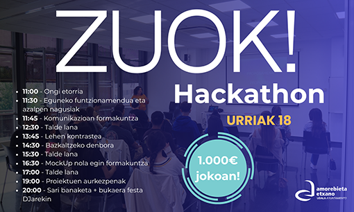 El 18 de octubre, el Centro Zelaieta se convertirá en un espacio de creatividad juvenil con la celebración de un Hackathon, una actividad organizada por el Ayuntamiento de Amorebieta-Etxano en el marco del proyecto ZUOK. La jornada, que se desarrollará de 11:00 a 22:00 horas, tiene como objetivo diseñar la oficina de información juvenil digital, una propuesta realizada y solicitada por la juventud zornotzarra bajo el programa ZUOK el pasado año.