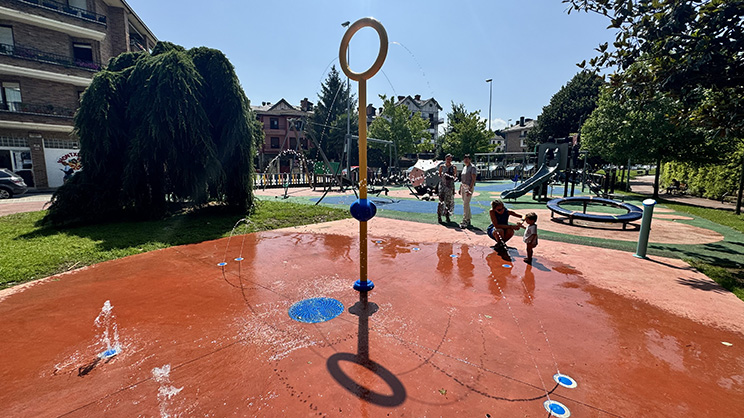 El parque incluye diferentes grifos y juegos de agua que permiten jugar y refrescarse en un entorno seguro y accesible. Además, se ha incorporado un innovador sistema de ahorro de agua que reduce el consumo hasta en dos tercios, contribuyendo así a una gestión más sostenible de los recursos hídricos.