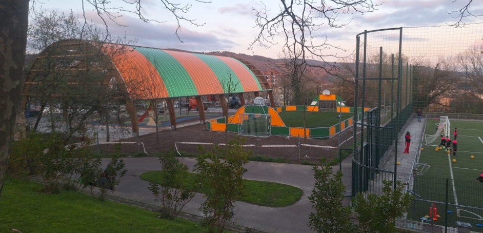 Basauri comenzó en octubre las obras para instalar una cubierta en la zona de juegos infantiles de Basozelai y crear una nueva zona multideportiva en el terreno adyacente. La nueva pista multiusos para practicar fútbol, baloncesto, etcétera ya está finalizada -solo resta sembrar hierba en el perímetro exterior-, por lo que el Ayuntamiento de Basauri la ha abierto al uso por parte de la ciudadanía.