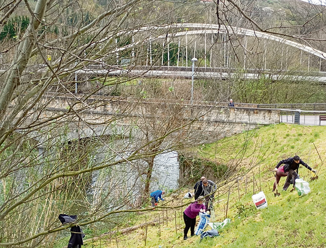 Ayer, 23 de marzo, el grupo ecologista Sagarrak realizó en Basauri una labor de plantación y de limpieza de residuos cerca del puente de Artunduaga. El objetivo era reivindicar una labor continuada en la recuperación del bosque de ribera, así como llamar la atención sobre “la gran cantidad de residuos depositados en este entorno”, explicaban.
