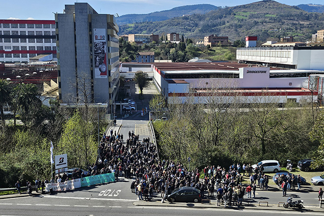 Las movilizaciones convocadas por los sindicatos en Bridgestone Basauri han comenzado hoy. Arrancan con una concentración de trabajadores en el exterior de la fábrica de Urbi en la que muestran su disconformidad por el ERE del 40% de la plantilla que afectará a 335 empleados de los 831 totales.