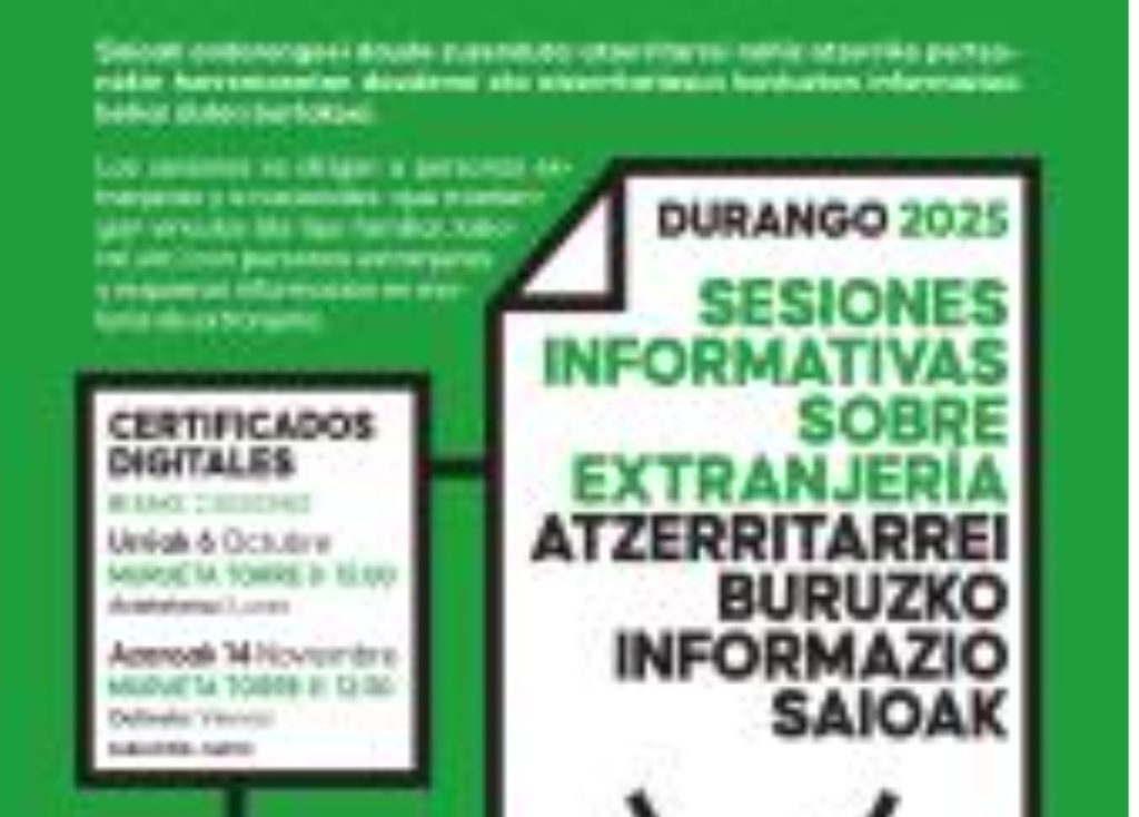 La sesión se llevará a cabo el 7 de noviembre, viernes, a las 18:00 horas en Elkartegi de Durango. Durante el evento, los asistentes recibirán información detallada sobre los procedimientos necesarios para homologar sus titulaciones o los años de estudio realizados en el extranjero, permitiendo que dichos estudios sean reconocidos oficialmente por las autoridades educativas españolas.