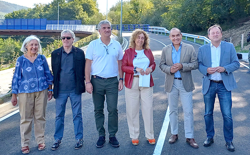 Susana García Chueca, consejera de Movilidad Sostenible, acompañada por el viceconsejero Miguel Ángel Páez, el director general de ETS, Antonio López, y el primer teniente de alcaldesa de Amorebieta-Etxano, Anartz Gandiaga, han recorrido el viaducto para comprobar el resultado de los trabajos realizados.