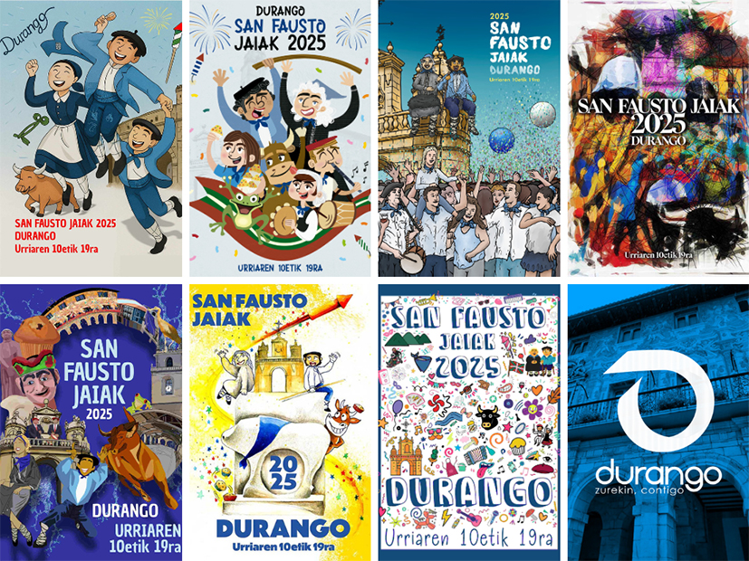 Mañana, 4 de septiembre, se abre el plazo de votación popular para seleccionar el cartel que representará las próximas Fiestas de San Fausto 2025. Hasta el 11 de septiembre, todas las personas mayores de 16 años empadronadas en Durango podrán votar por su cartel favorito entre los 7 trabajos finalistas seleccionados previamente por la Comisión de Fiestas.